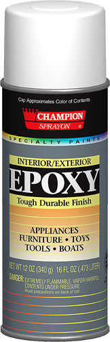 Champion Sprayon® Epoxy Paint is formulated to supply a hard, high-gloss finish in a single application. Highest resistance of any paint to grease and light oils. Resists cracking, chipping, peeling and staining. Ideal for use indoors.