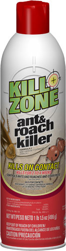 Kill Zone® Ant & Roach Killer kills on contact. It combines effective knockdown with residual power for 2 to 4 weeks. Indoors, it kills and controls ants, brown dog ticks, carpet beetles, centipedes, cockroaches, crickets, earwigs, firebrats, silverfish, sow bugs and spiders. It also controls fleas and ticks found where pets rest (their beds, as an example). Unconditionally guaranteed.